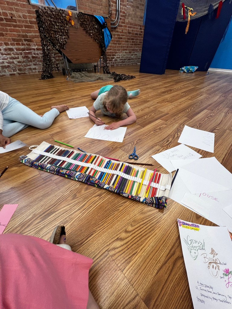 Then, we create. What do we create? We usually don’t know all the details. In our culture things are typically not shared until they are polished or “perfect.” But being human isn’t like that. In the arts we are invited to see the process as the treasured time, and release our ideas of perfection when it is time to invite others into the space. This is where we devise, improvise, and create messily. And finally, we share with our community something we created – and are still creating – together.