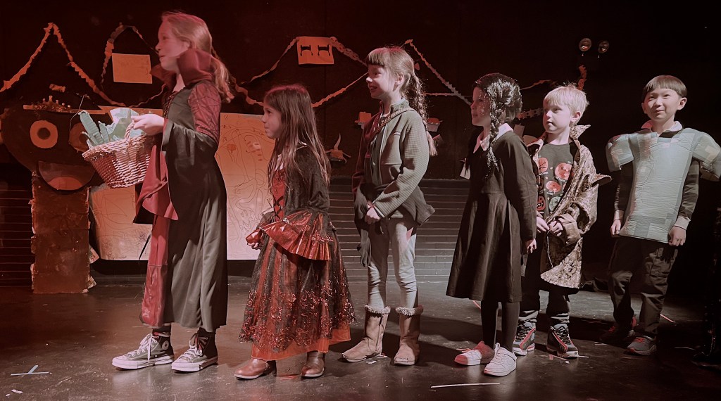 Grades K-1st. Devised based on the origin story of Skywoman Falling from First Nation peoples, including the Council of the Three Fires, as well as inherited poetry, songs. Some shadow puppetry and original stories to celebrate creatures and the earth.