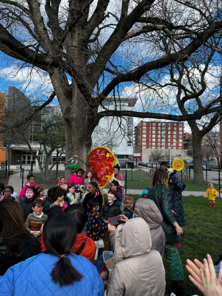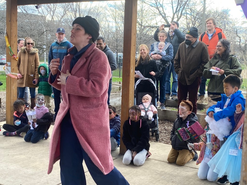 Grades K-2nd. A promenade style, site specific original show about environmental care, animals, and puppets. Set in Skinner Park.